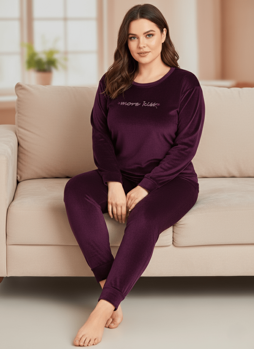 Открийте перфектния баланс между комфорт и елегантност с нашата дамска кадифена пижама. Изработена от висококачествено, меко на допир кадифе, тя осигурява топлина и уют през студените вечери. Горната част е с изчистен дизайн и надпис, а долната част – с удобна кройка и ластичен колан (долнището е с маншети). Идеален избор за стилен домашен комфорт или подарък за специален човек.