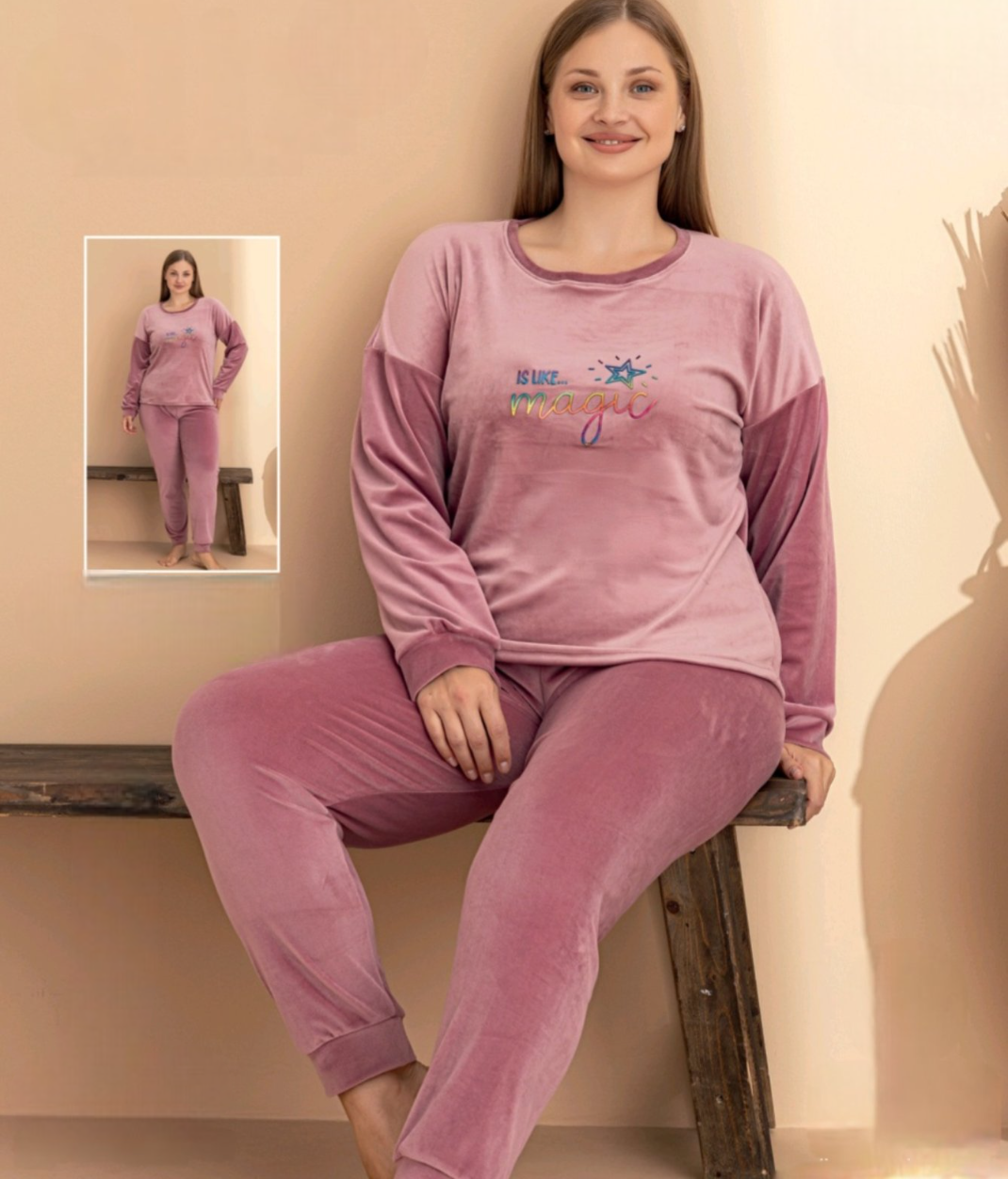 Подарете си истински комфорт и стил с кадифената макси пижама. Изработена е от висококачествено меко кадифе, което осигурява еластичност, свобода на движение и приятно усещане върху кожата. Моделът е специално създаден за дами, които ценят комфорта, но не искат да правят компромис със стила си.