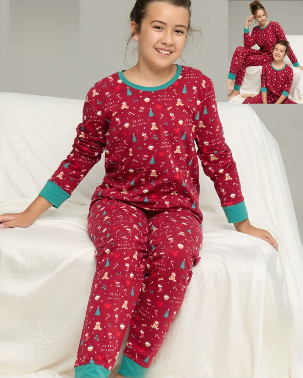 Детска пижама от колекцията „Мама и аз“ .Тези модели са създадени за специални моменти у дома – когато майка и дъщеря могат да се насладят на уют, мекота и стил заедно. Изработени от висококачествена материя с 95% памук и 5% ликра, те са едновременно удобни, еластични и приятни на допир.