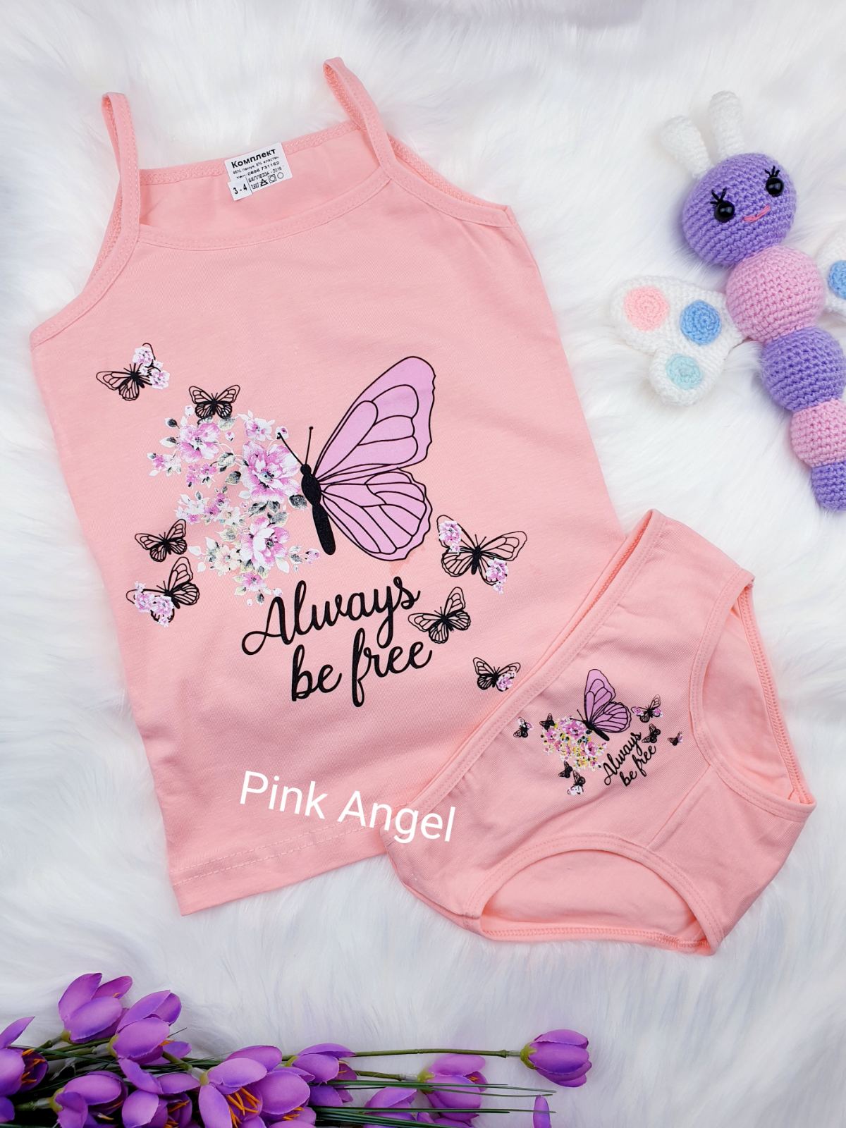 Памучен комплект бельо за момиче – потник и бикини. Щампа – пеперуда.