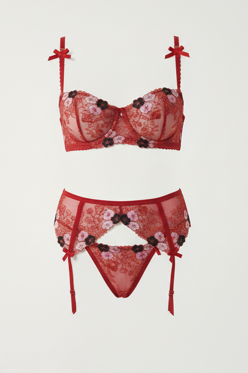 Комплект еротично бельо с флорална бродерия. Изключително секси и предизвикателно.