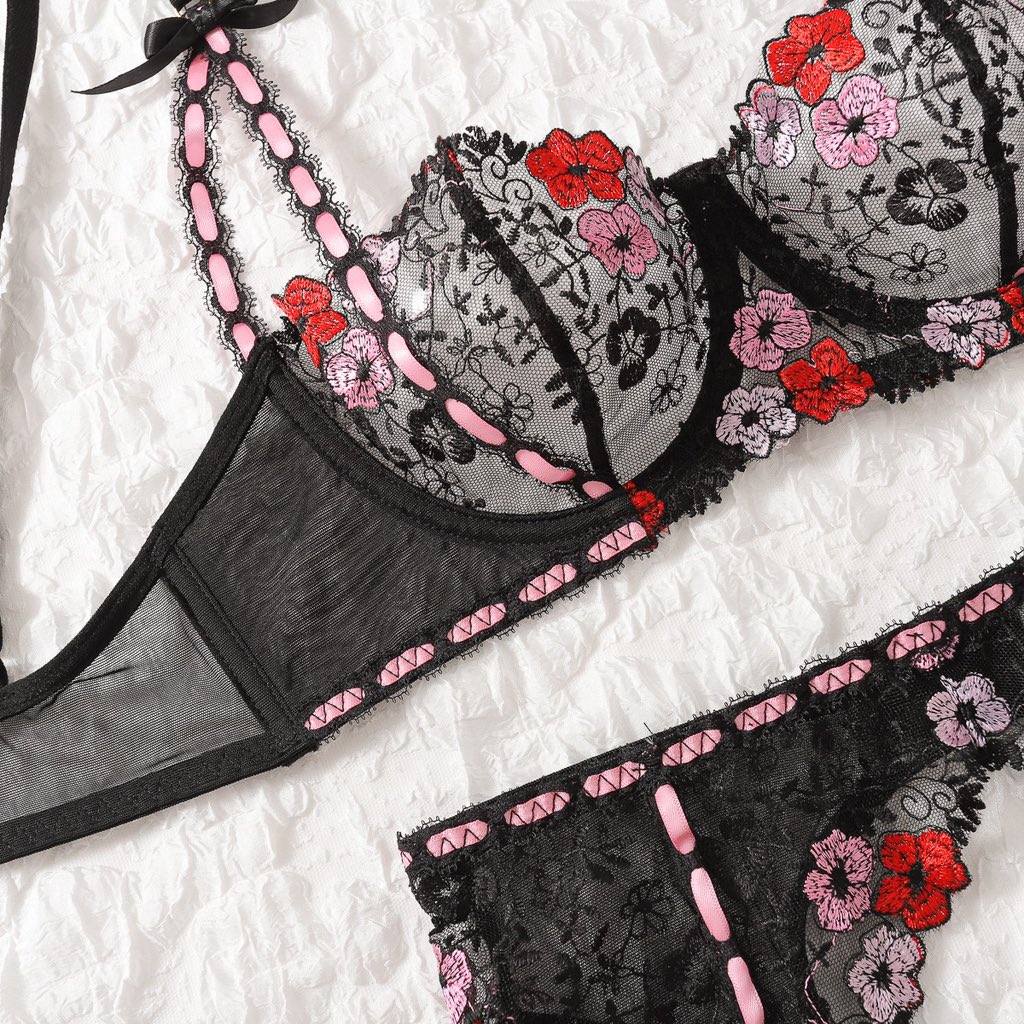 Комплект еротично бельо с флорална бродерия. Изключително секси и предизвикателно.