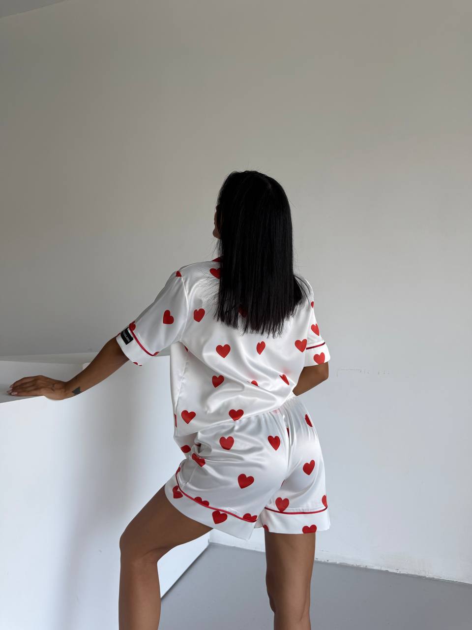 Цвят: бял на червени сърца