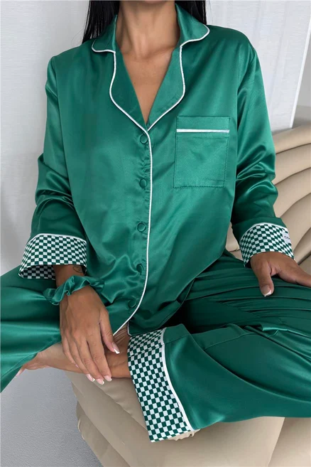 Цвят: зелен с елегантни бели кантове и каре акцент