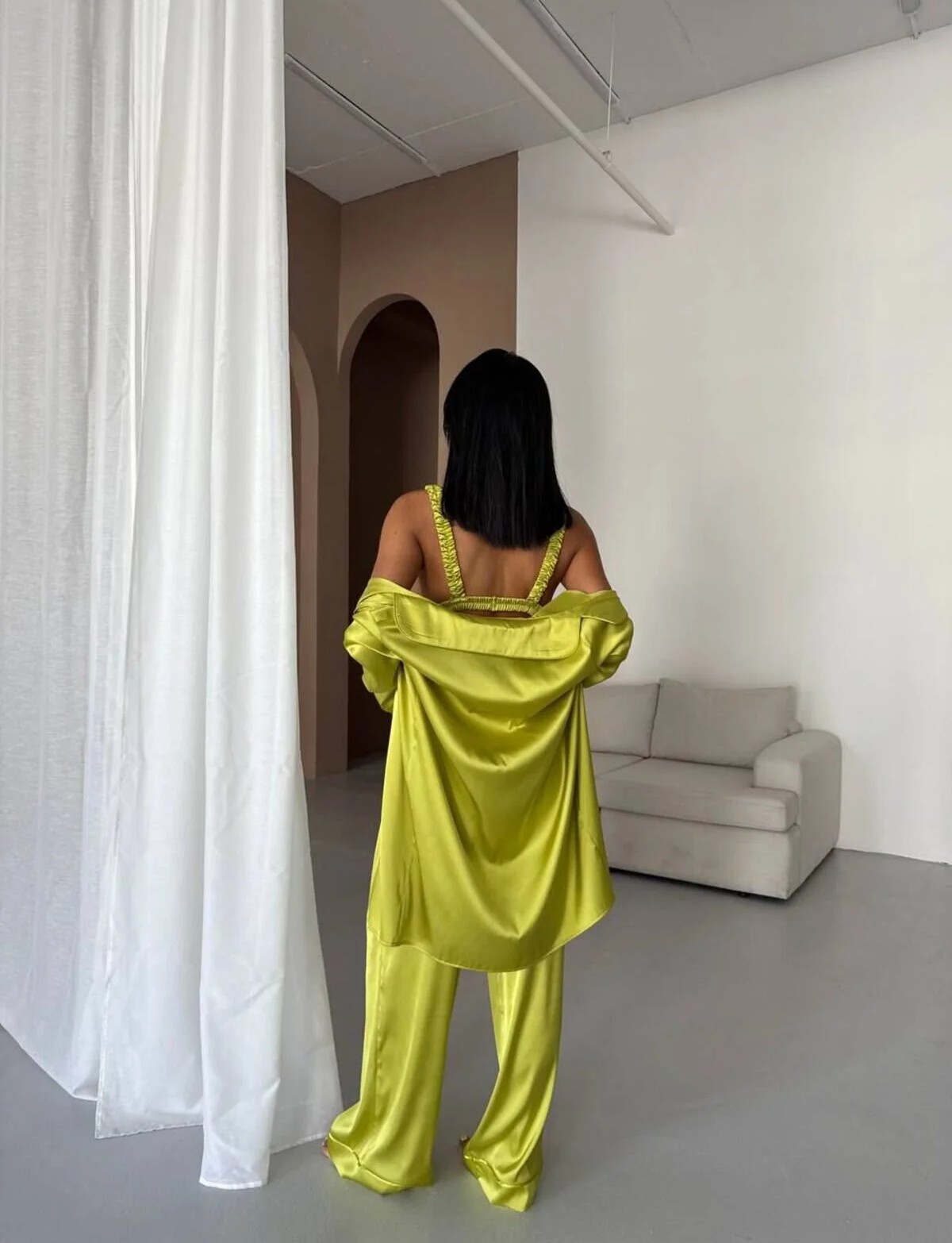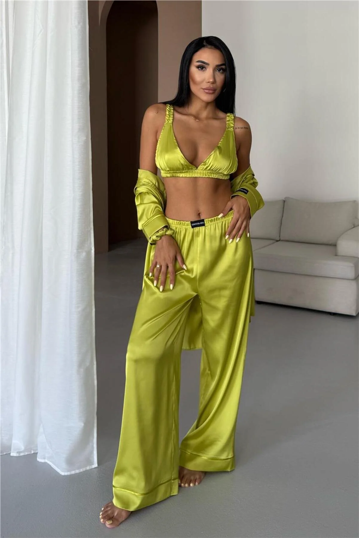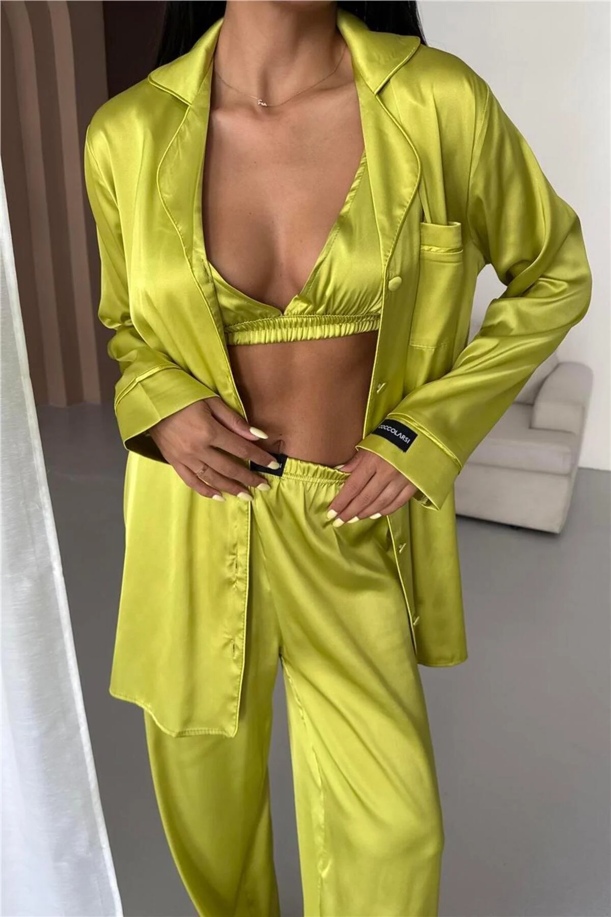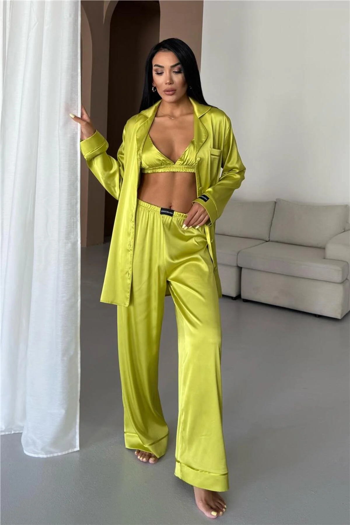 Изключително елегантена, сатенена пижама от 3 части.