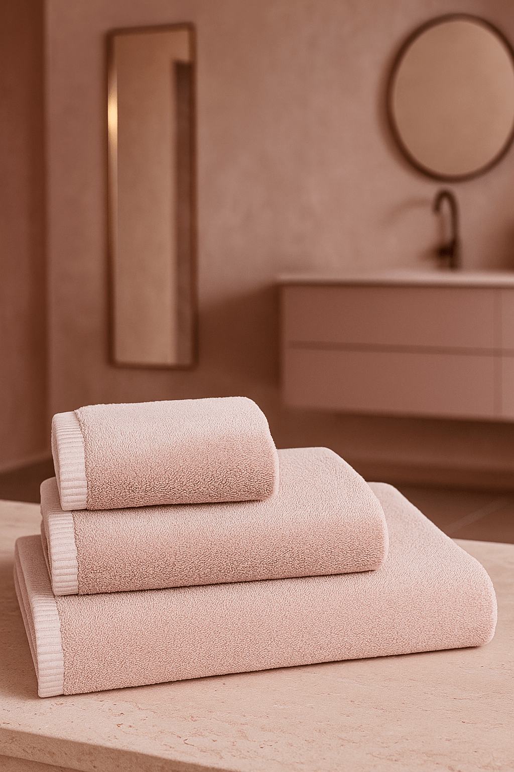 Комплект хавлии от 100% памук в пепел от рози цвят – меки и абсорбиращи.
