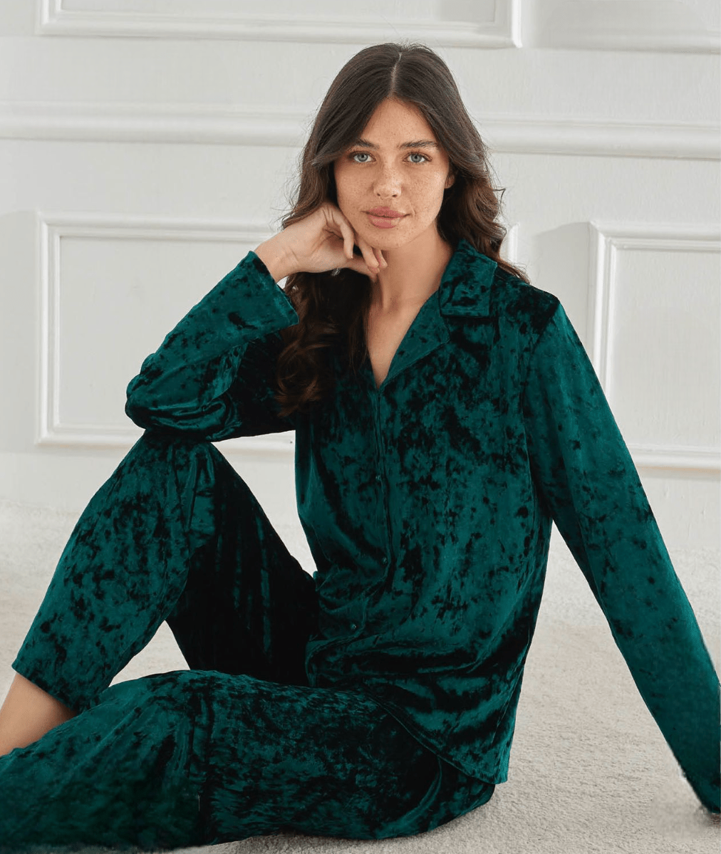 С тази кадифена дамска пижама ще внесеш уют, топлина и женствен чар във всеки момент у дома.