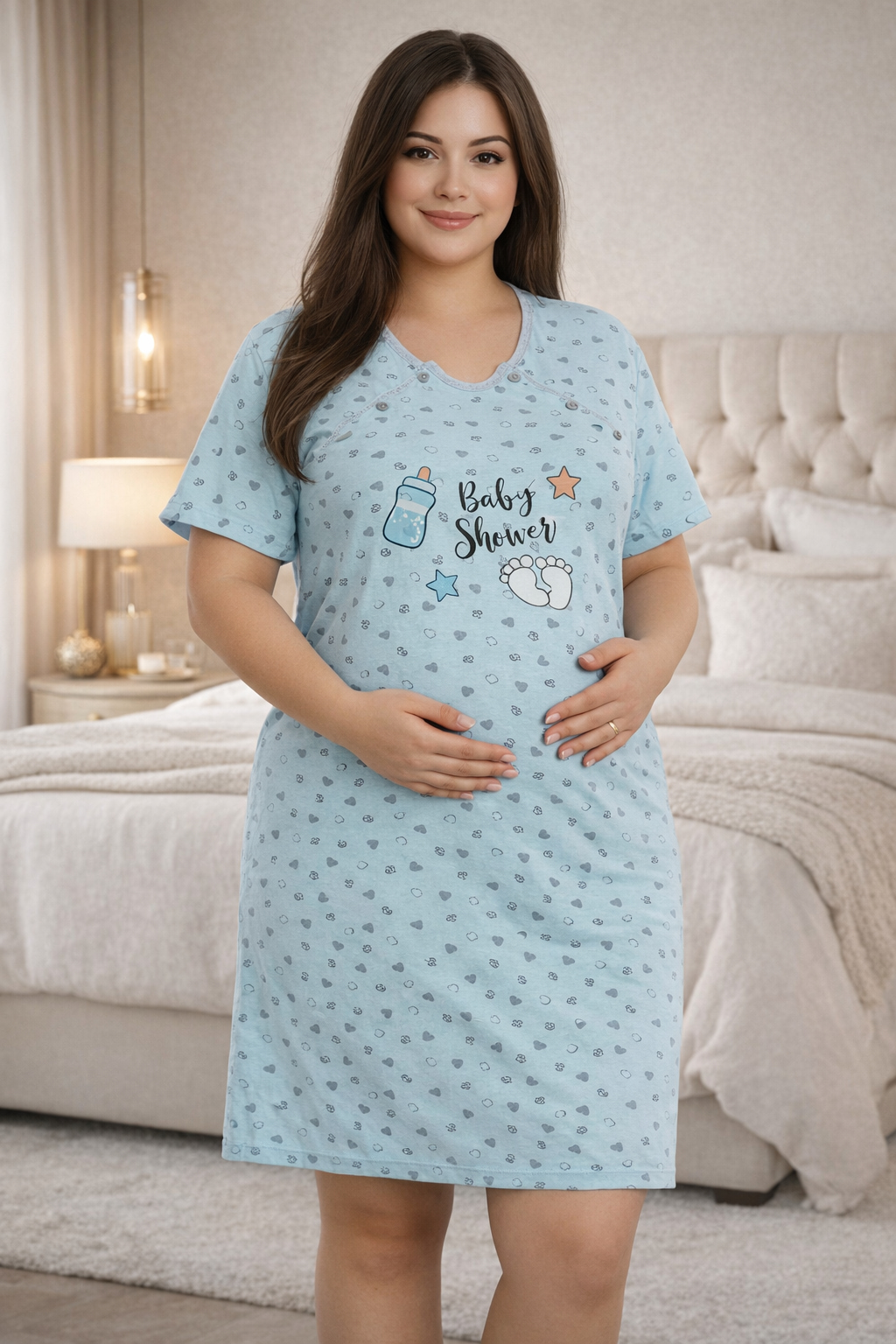 Комфортна и стилна нощница, специално създадена за бъдещи и нови майки. Изработена от 100% мек и дишащ памук, тя осигурява нежно усещане върху кожата и оптимален комфорт по време на сън и почивка. Свободната кройка и еластичната материя се адаптират към променящото се тяло по време на бременността и след раждане. Практичен дизайн с копчета в предната част, които улесняват кърменето и прави модела удобен както за дома, така и за родилното отделение.