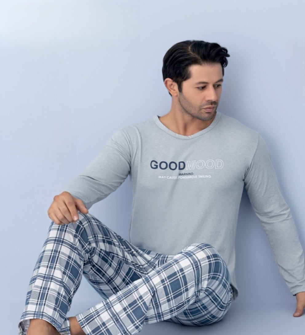 Мъжка памучна пижама с дълъг ръкав и дълъг панталон. Удобна, мека и стилна – идеална за спокоен сън и уют у дома.