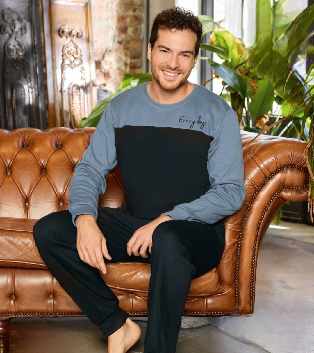 Топла мъжка пижама от плътен памук (интерлог) – съчетание от удобство, стил и качество за всяка нощ.