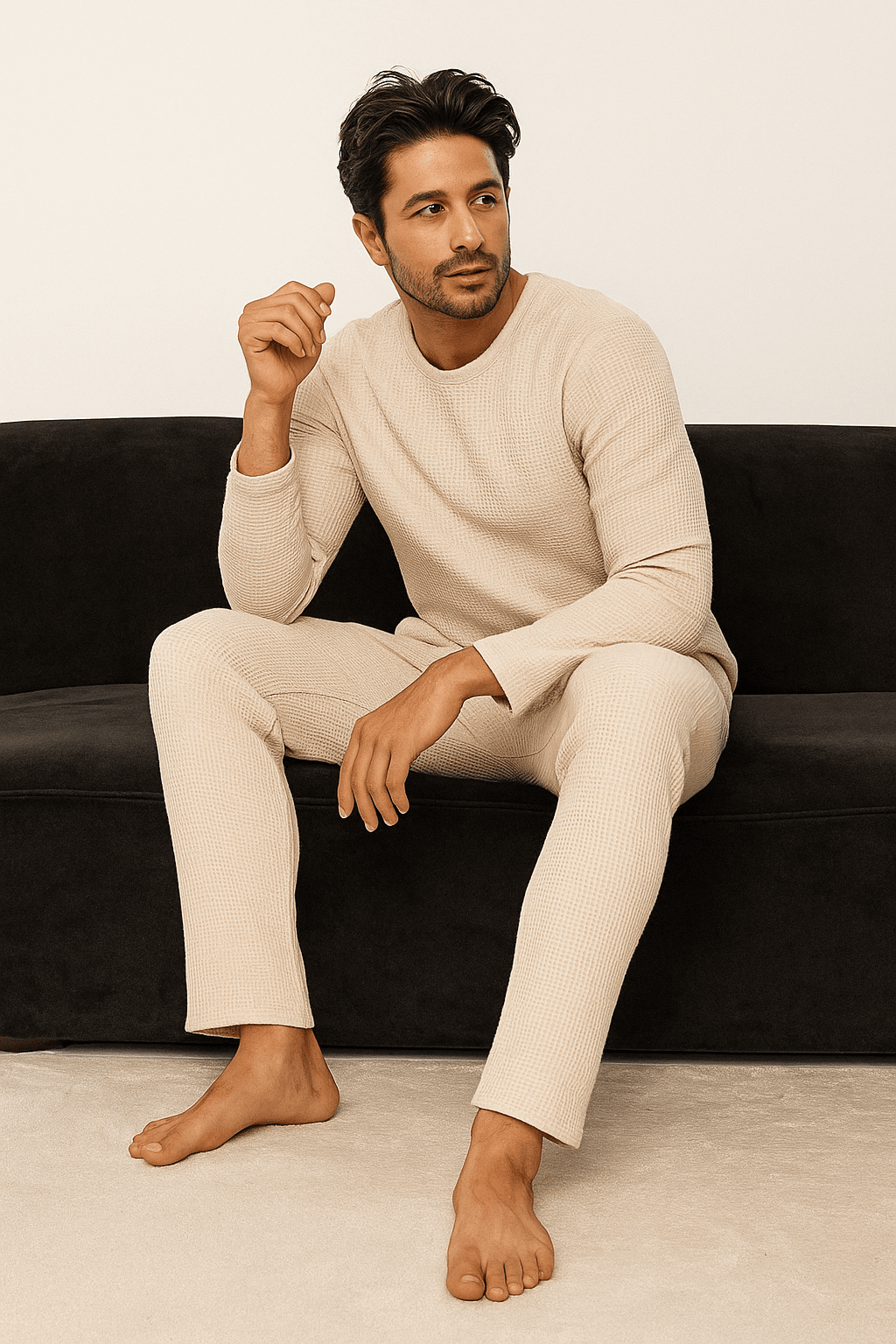 Мъжка пижама с дълъг ръкав – вафла 3463