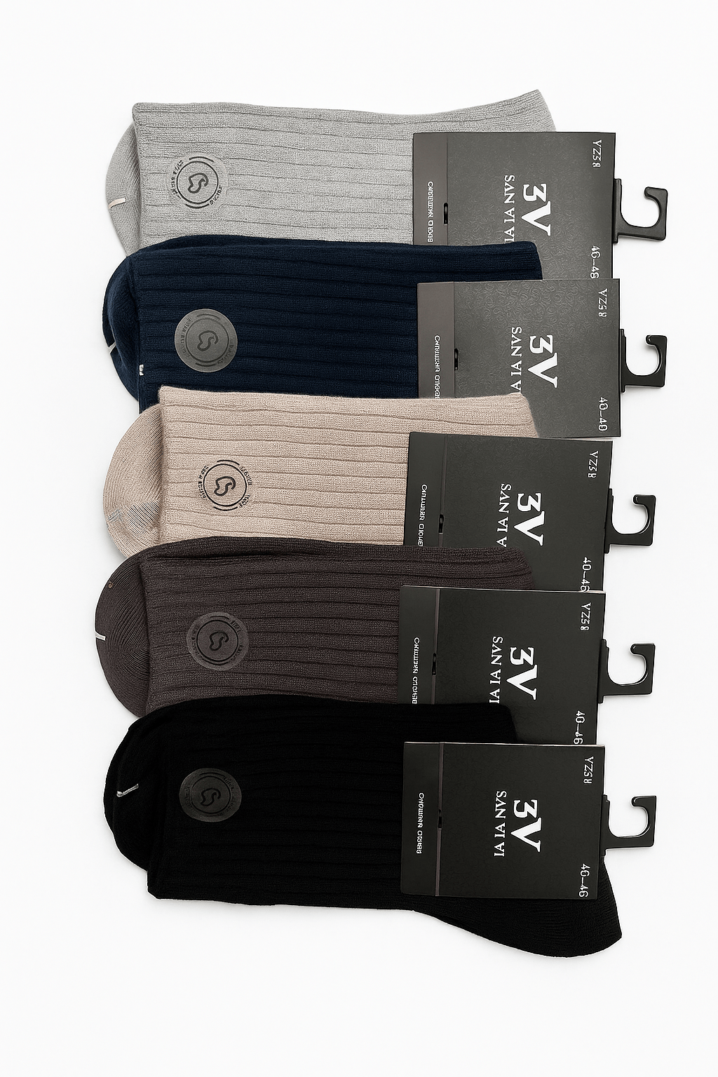 Потопи се в усещането за лукс с нашия комплект от 5 чифта кашмирени чорапи. Изработени от висококачествена смес , тези чорапи осигуряват изключителна мекота, топлина и комфорт през целия ден.