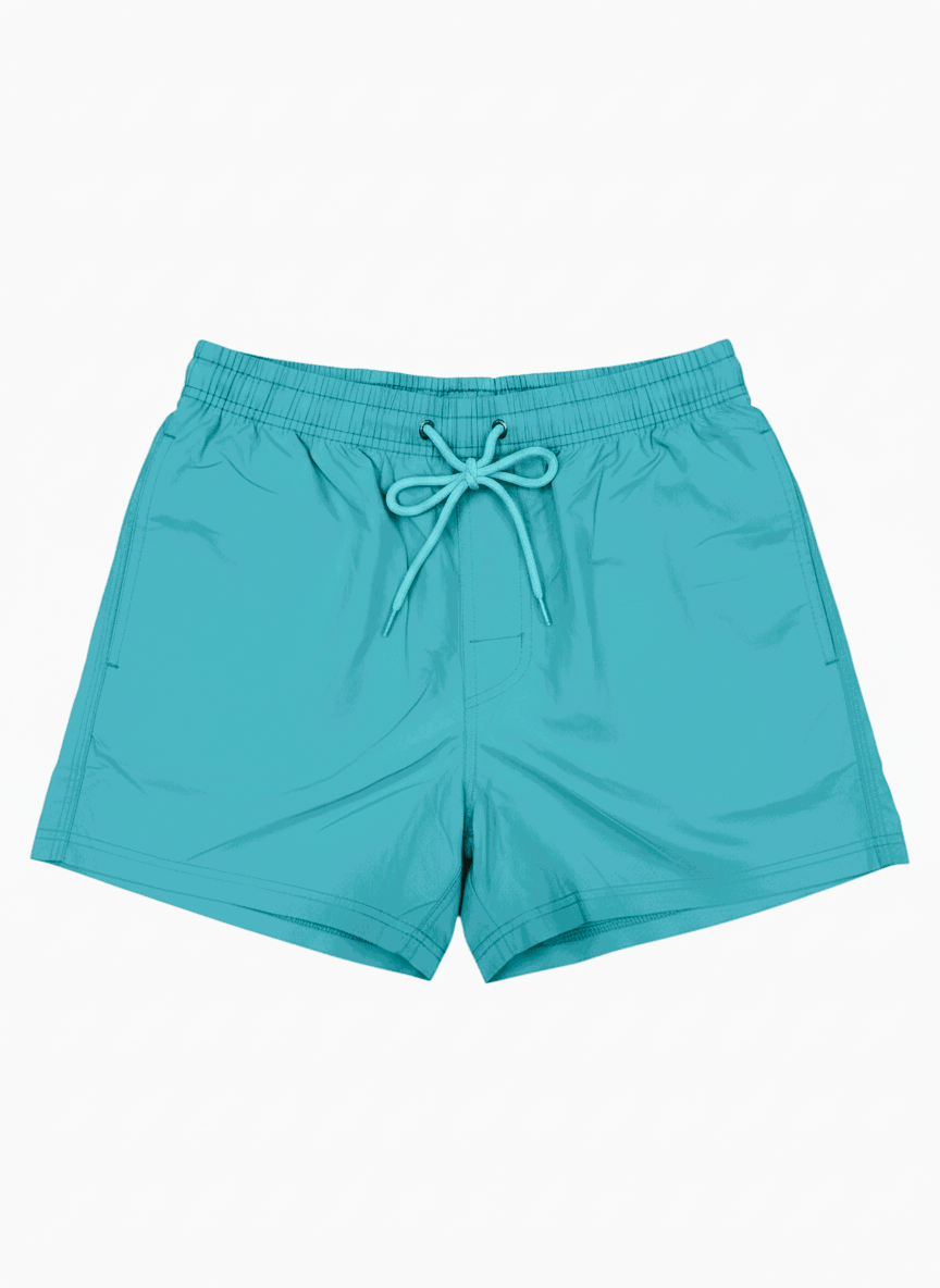 Мъжки бански шорти. Изработен от лека и бързосъхнеща материя, банският осигурява комфорт както на плажа, така и край басейна. Моделът е с удобна еластична талия и регулируема връзка за перфектно прилягане. С вътрешен мрежест бандаж. Моделът е с два странични и един заден джоб.