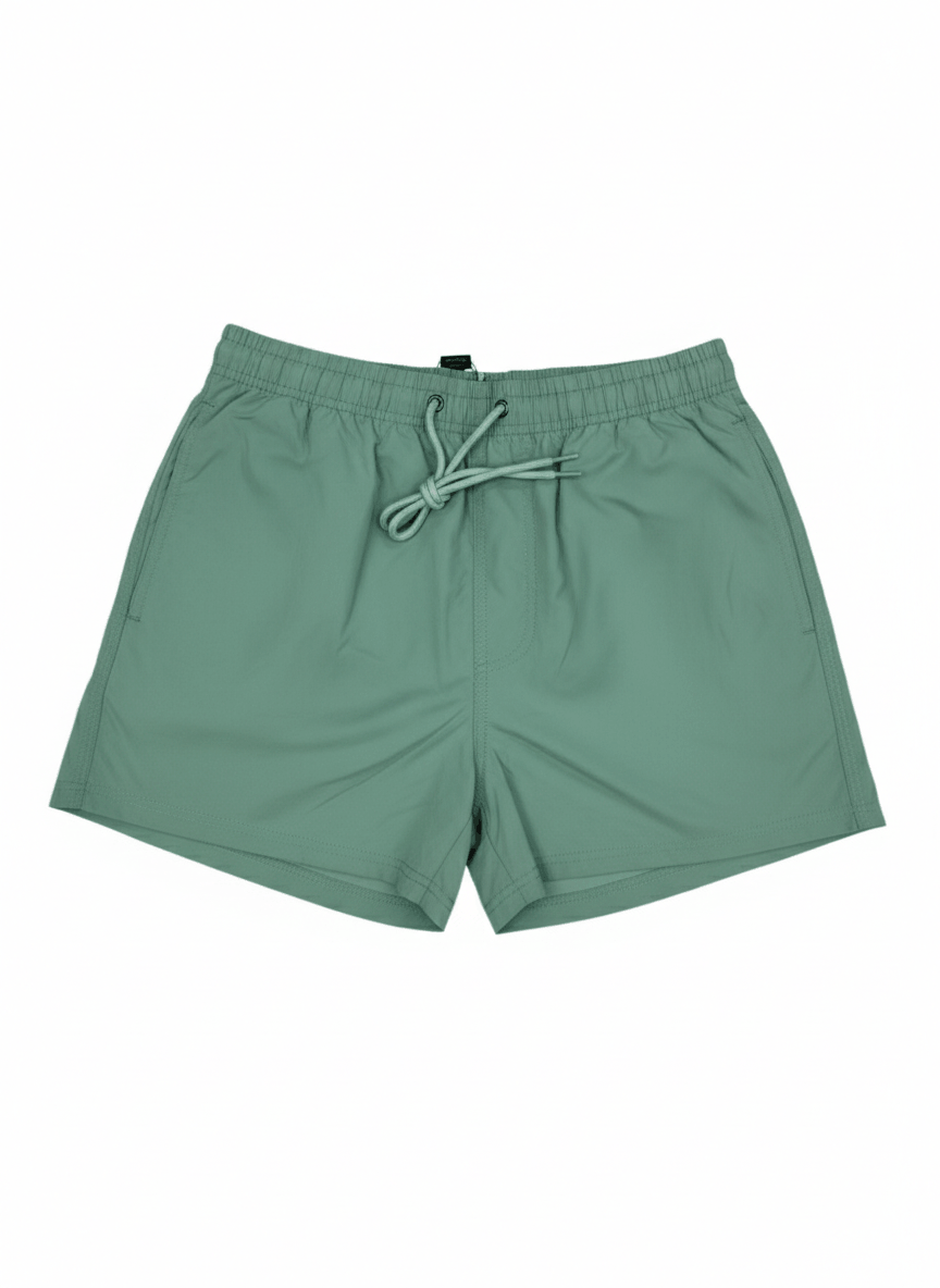 Мъжки бански шорти. Изработен от лека и бързосъхнеща материя, банският осигурява комфорт както на плажа, така и край басейна. Моделът е с удобна еластична талия и регулируема връзка за перфектно прилягане. С вътрешен мрежест бандаж. Моделът е с два странични и един заден джоб.