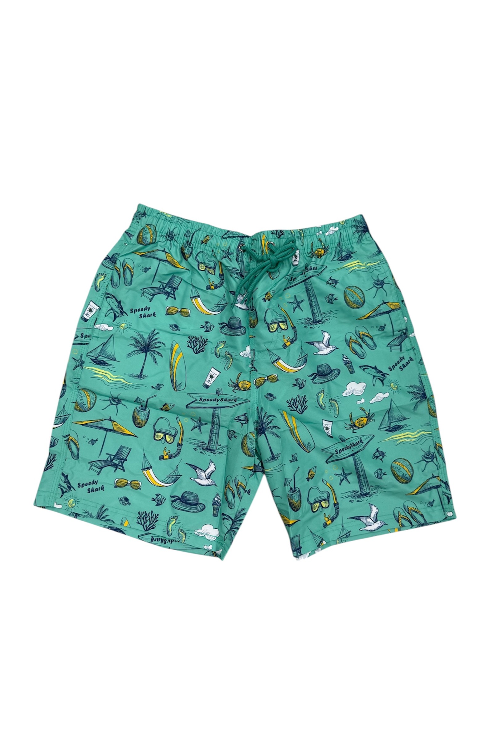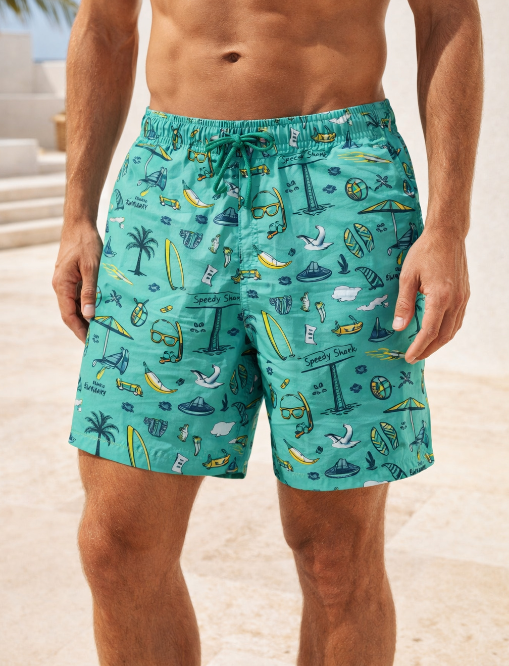 Мъжки бански шорти. Моделът е с удобна еластична талия и регулируема връзка за перфектно прилягане. Изработени от лека, бързосъхнеща материя, с вътрешен мрежест бандаж. Моделът е с два странични и един заден джоб.