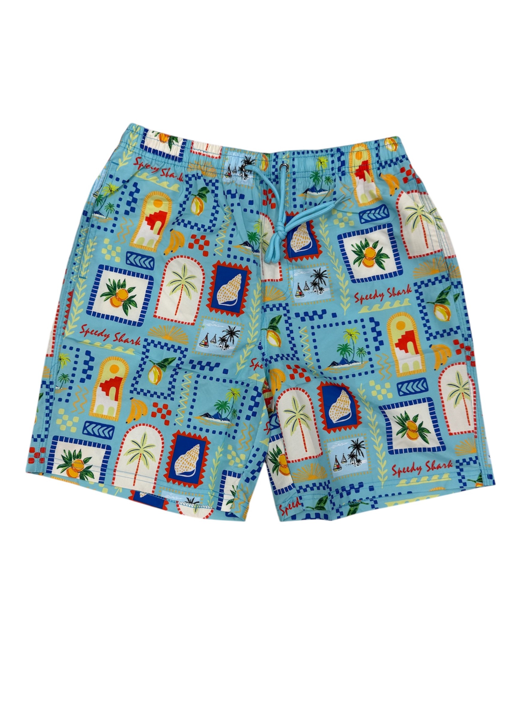 Мъжки бански шорти с модерен тропически дизайн. Моделът е с атрактивен тропически принт, който създава усещане за лятното настроение. Изработен от лека и бързосъхнеща материя, банският осигурява комфорт както на плажа, така и край басейна. Моделът е с удобна еластична талия и регулируема връзка за перфектно прилягане. С вътрешен мрежест бандаж. Моделът е с два странични джоба.