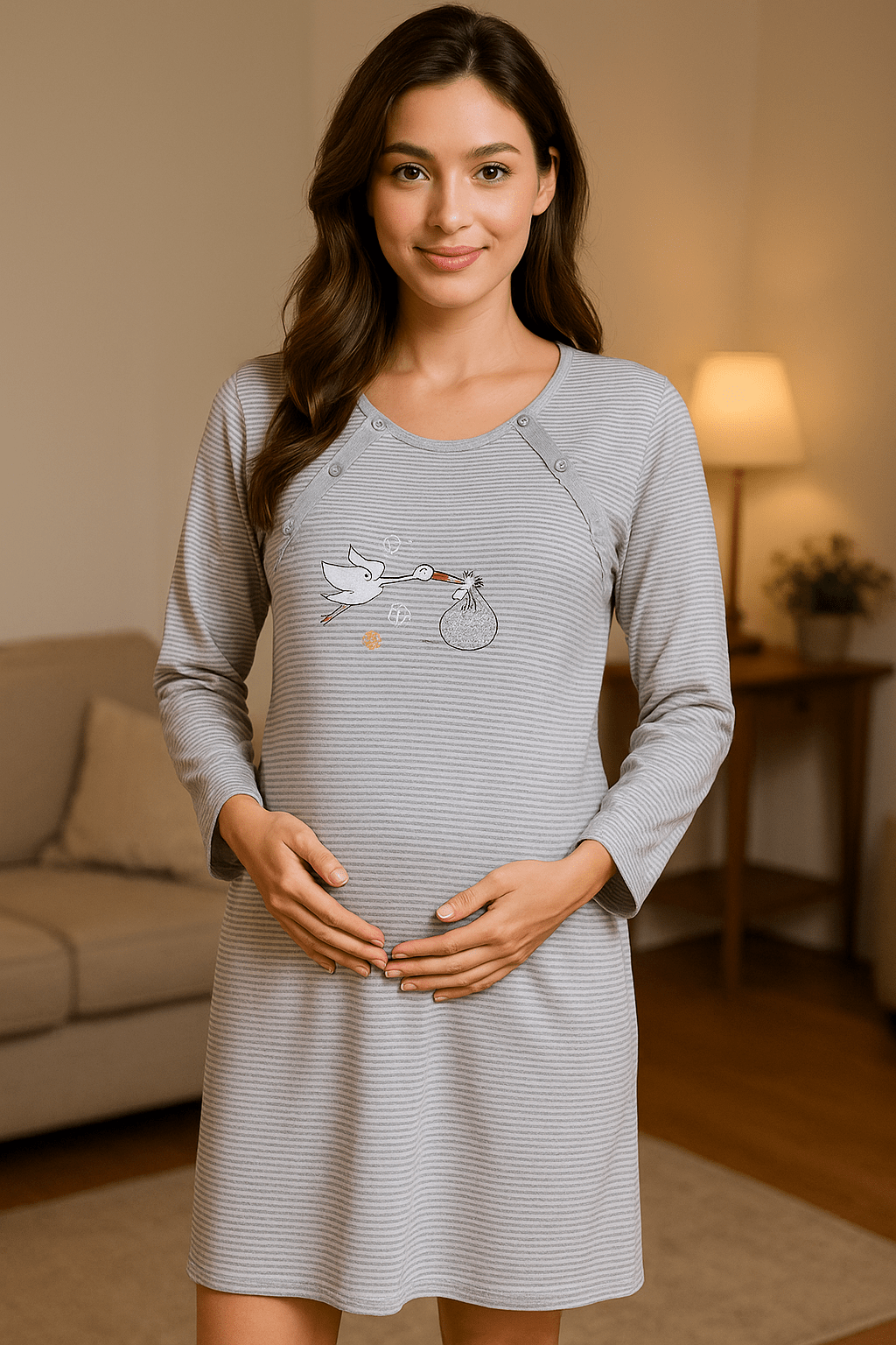 Нощница за бременни и кърмещи жени от 100% памук. Комфортен модел с лесен достъп за кърмене и свеж дизайн за ежедневна употреба.