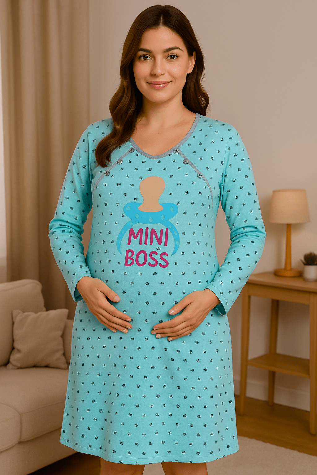 Изработена от висококачествен памучен плат, тя осигурява комфорт по време на бременността и в периода след раждането.