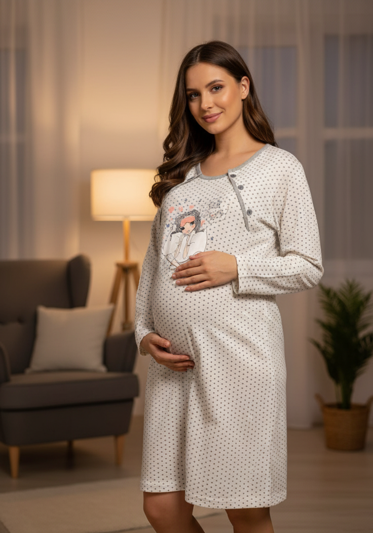 Нощница за бременни и кърмещи жени от 100% памук. Комфортен модел с лесен достъп за кърмене и свеж дизайн за ежедневна употреба.