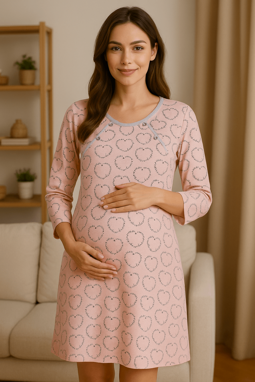 Нощница за бременни и кърмещи жени от 100% памук. Комфортен модел с лесен достъп за кърмене и свеж дизайн за ежедневна употреба.