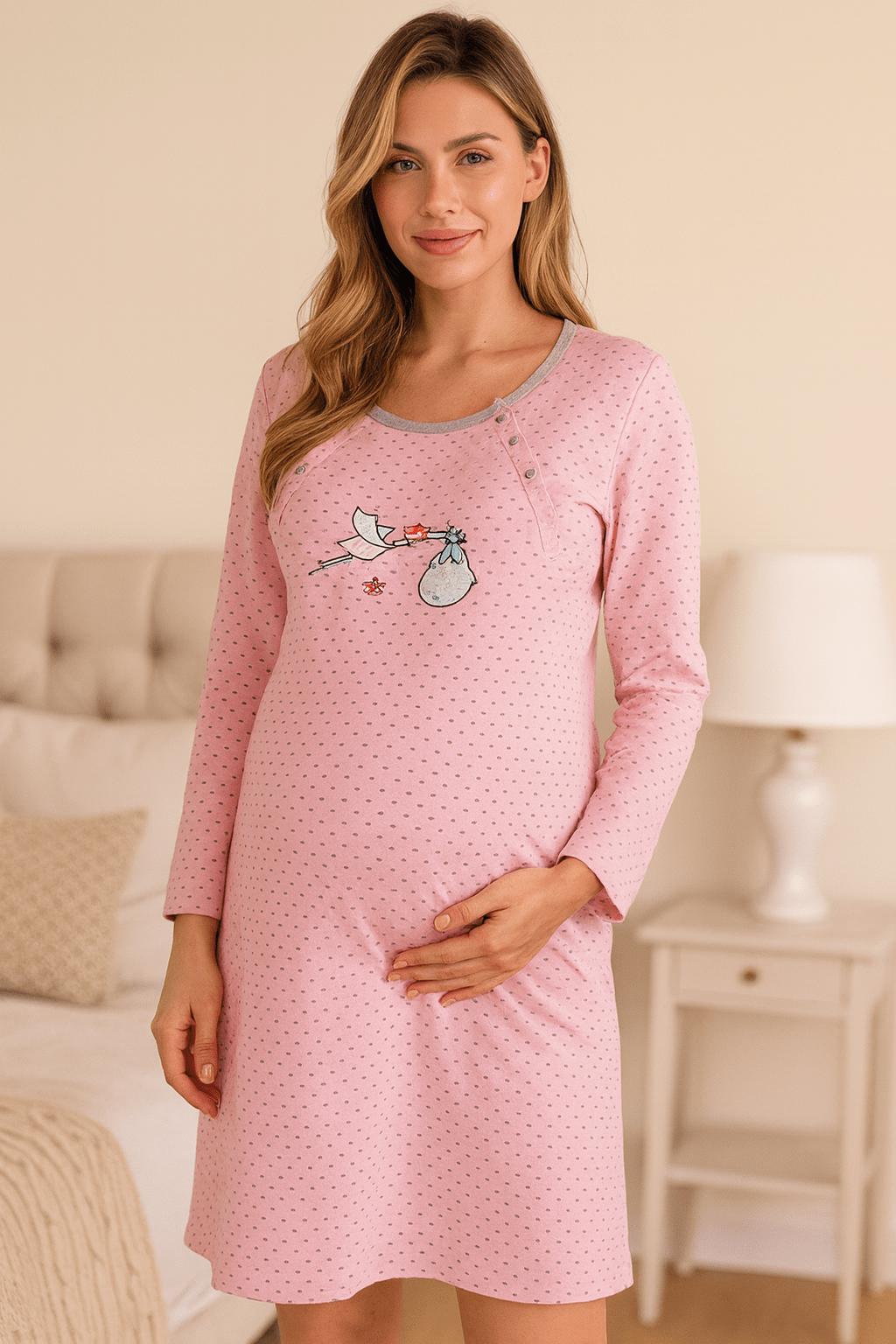 Нощница за бременни и кърмещи жени от 100% памук. Комфортен модел с лесен достъп за кърмене и свеж дизайн за ежедневна употреба.