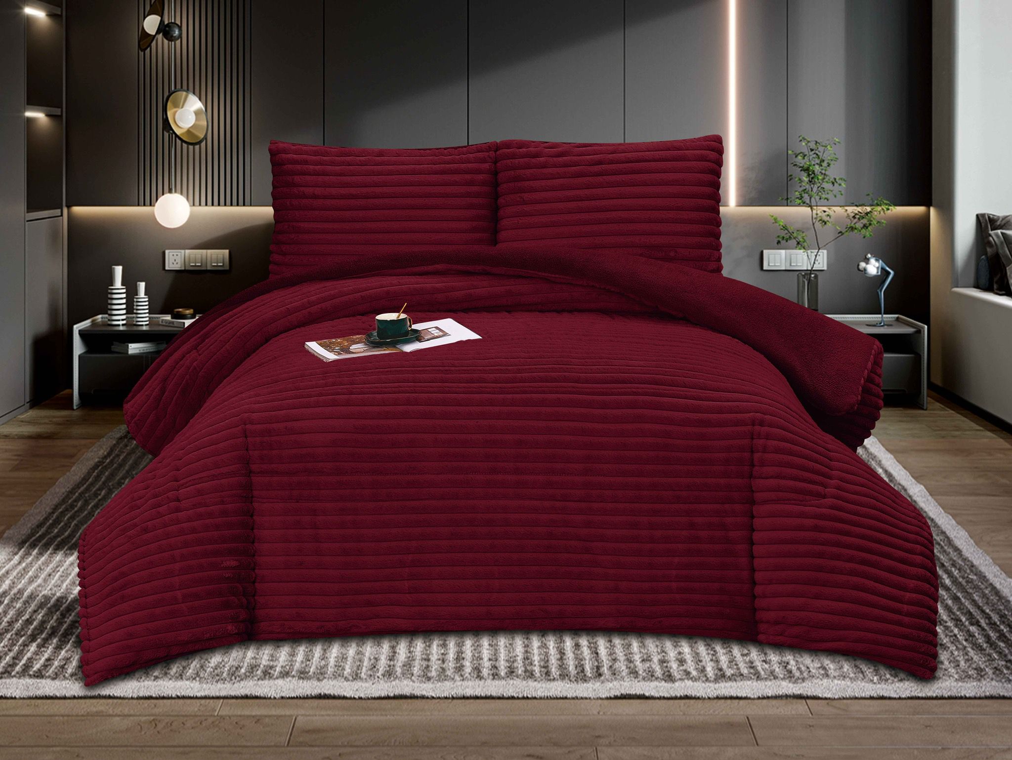 Комплект пухена завивка бордо с 2 калъфки – мека, топла и стилна, идеална за уют и комфорт през студените месеци.