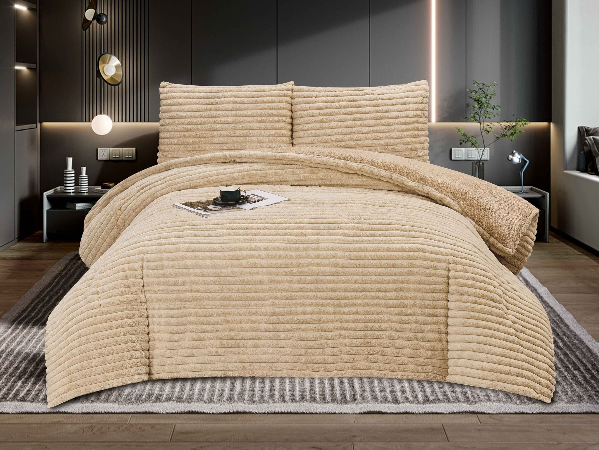 Комплект пухена завивка с 2 калъфки в светло бежов цвят – мека, топла и стилна, идеална за уют и комфорт през студените месеци.