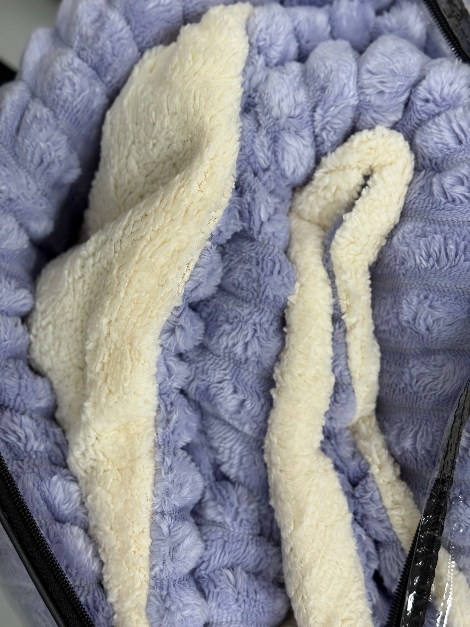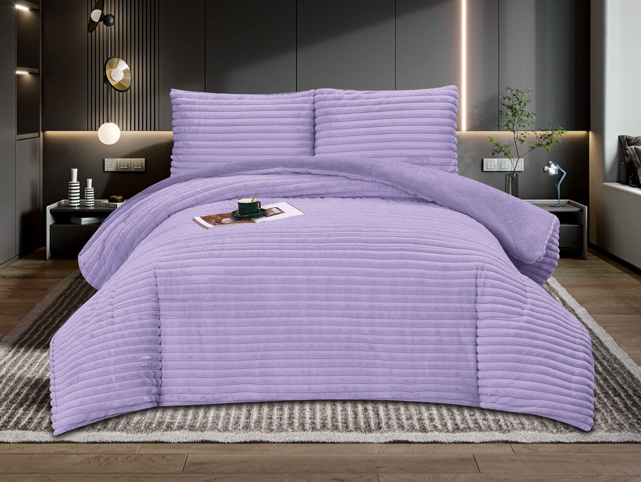 Комплект пухена завивка с 2 калъфки в светло лилаво – мека, топла и стилна, идеална за уют и комфорт през студените месеци.