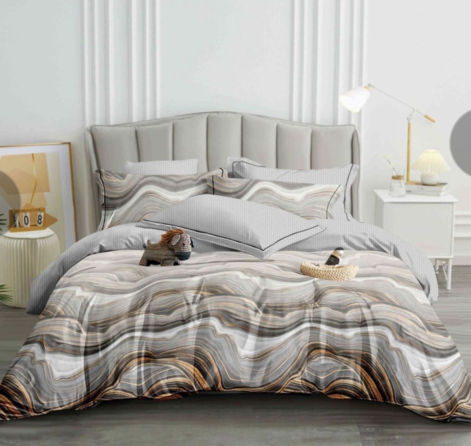Цвят на чаршафа -сив , пликът/двулицев/ и калъфките са- сиво преливащо като могат да бъдат различни спрямо частта накоято се е паднал плата
