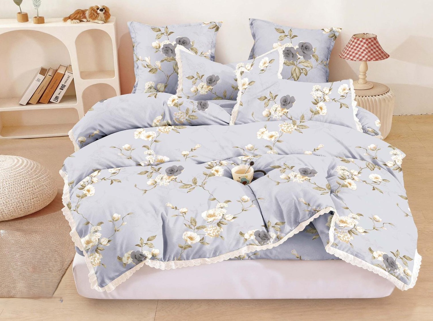 Материя:фин памук / 80% памучни влакна и 20% полиестерни правещи комплекта устойчив при многократна употреба, не се мачка при пране и няма свиваемост , за разлика от 100% памучните материи /
