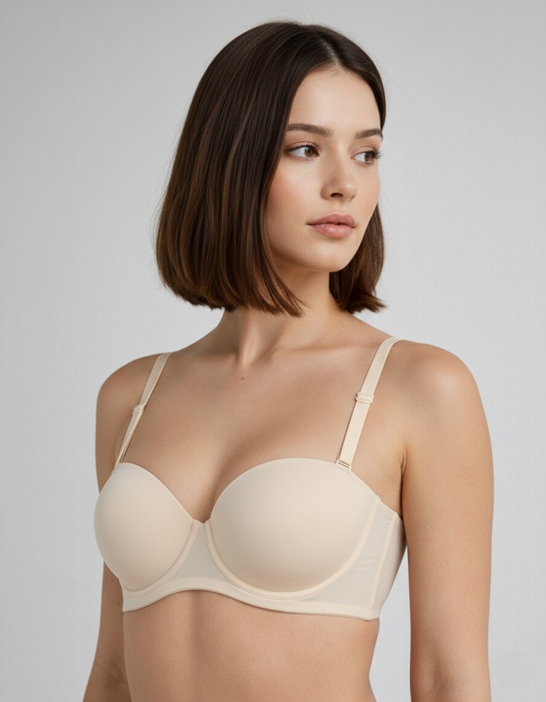 Бралетът е лазерно изрязан, което гарантира гладък силует без ръбове и дискретно прилягане под дрехите. Разполага с твърди оформящи чашки без банели. Идеален избор за прилепнали дрехи, официални тоалети и ежедневен комфорт. Регулируемите презрамки осигуряват индивидуално напасване и стабилност през целия ден.