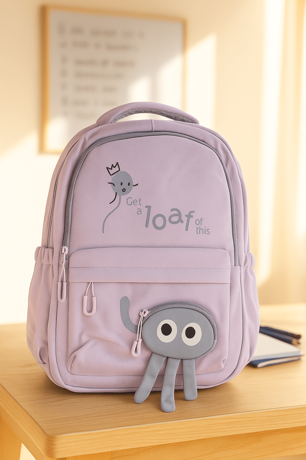 Стилна и практична раница с модерен дизайн, подходяща за училище, работа или пътуване. Раницата разполага с три удобни отделения с цип за лесна организация на учебници, лаптоп и аксесоари, плюс малко джобче с забавен дизайн, както и джоб в задната част, без цип. Има и две странични джобчета подходящи за бутилки с вода.
