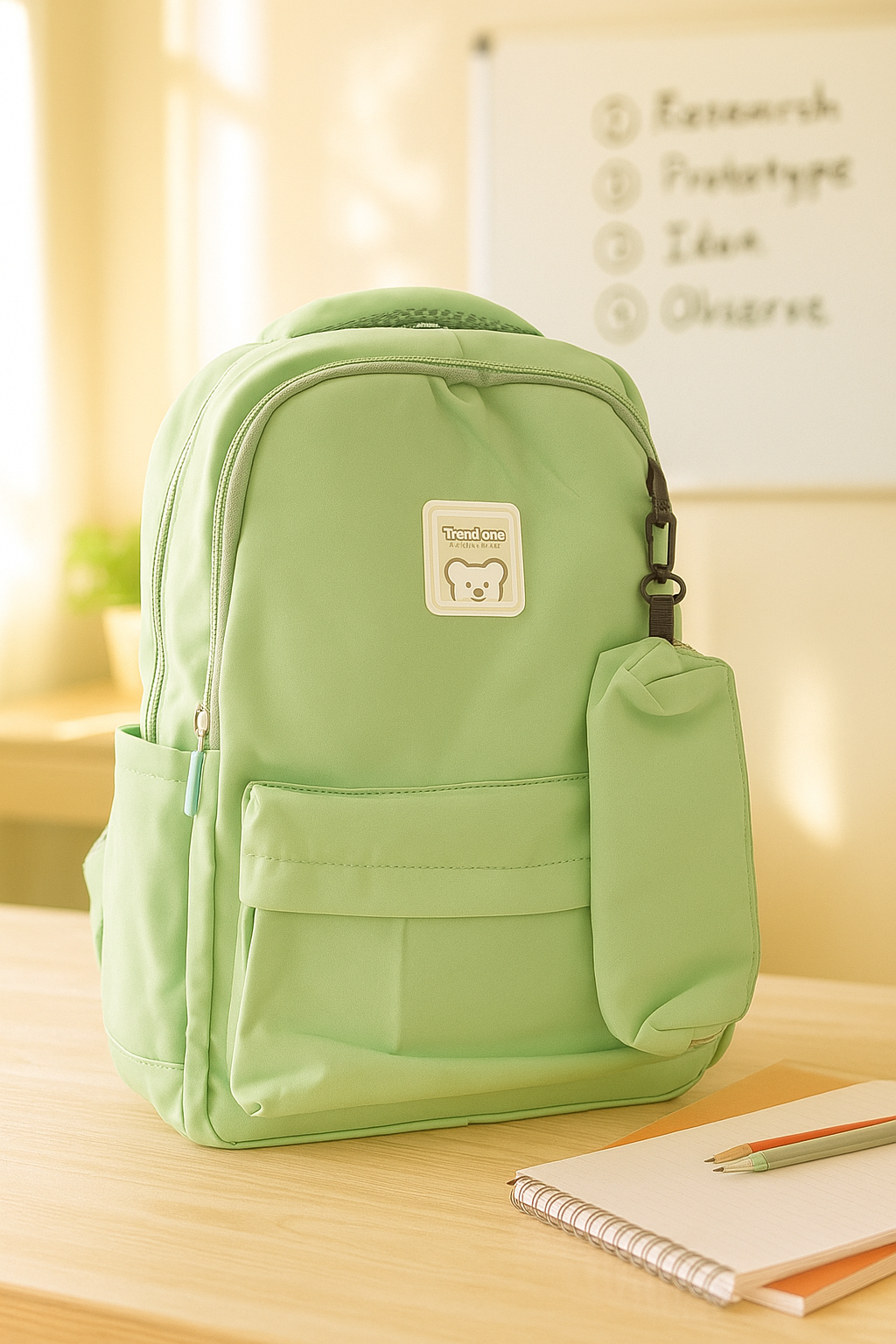 Стилна и практична раница с модерен дизайн, подходяща за училище, работа или пътуване. Раницата разполага с три удобни отделения с цип за лесна организация на учебници, лаптоп и аксесоари. В комплекта е включен и несесер, който допълва функционалността и улеснява съхранението на дребни вещи. Има и две странични джобчета подходящи за бутилки с вода.