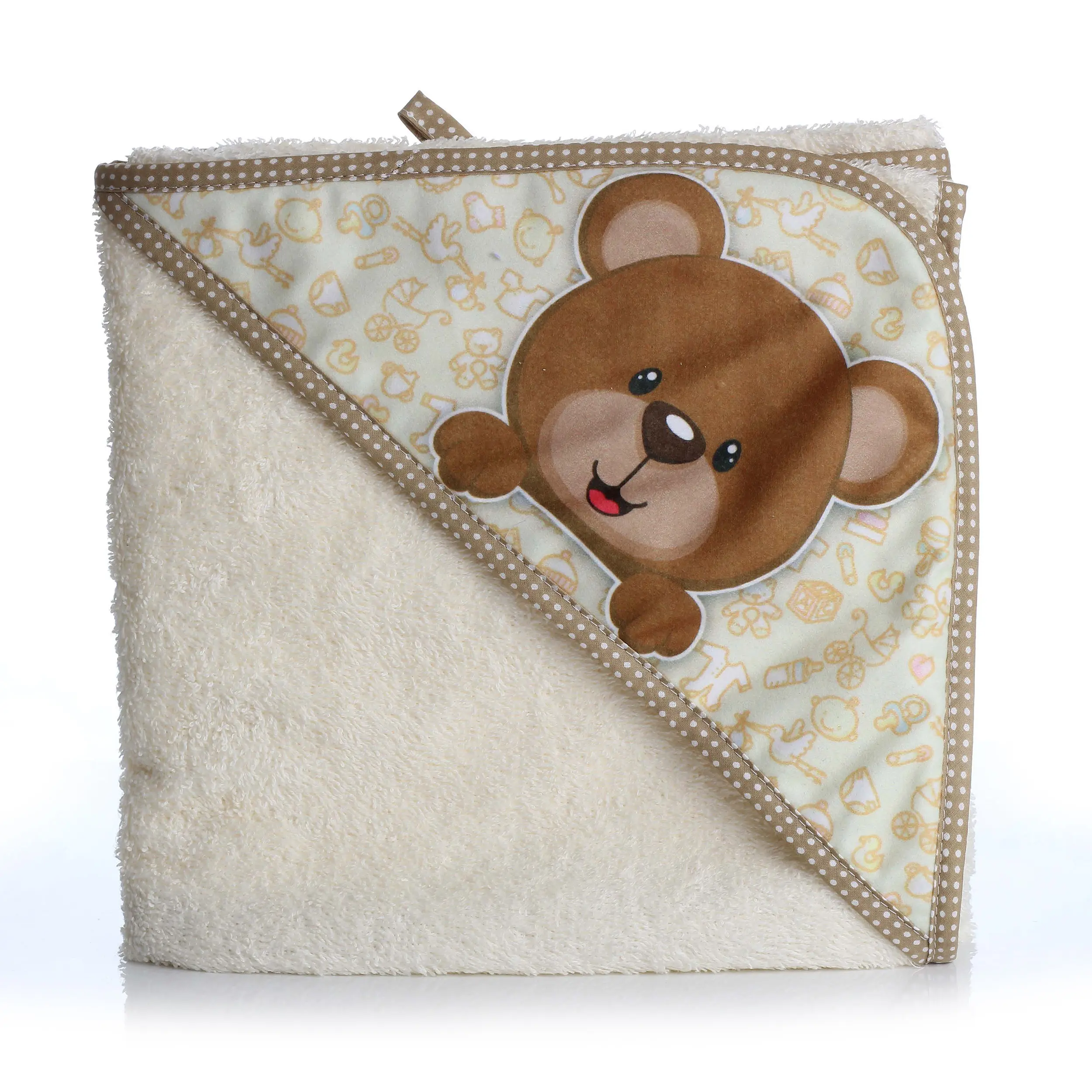 Хавлиена кърпа за всяко новородено или по-голямо бебе . С приспособена качулка, с весела апликация на бебенце. Подходяща за момченца. Изработена от 100 % микропамук . 400 гр./м2 .
