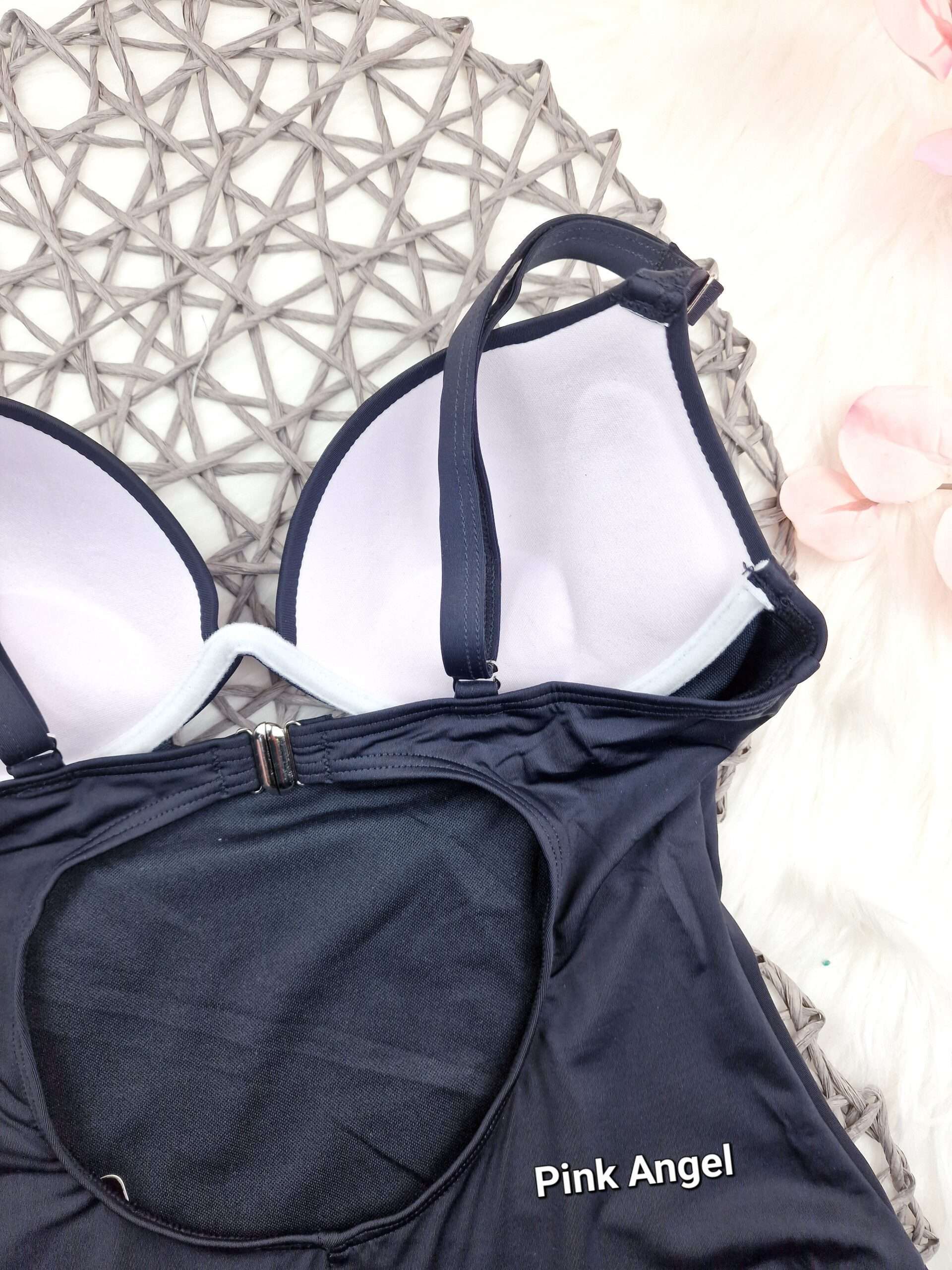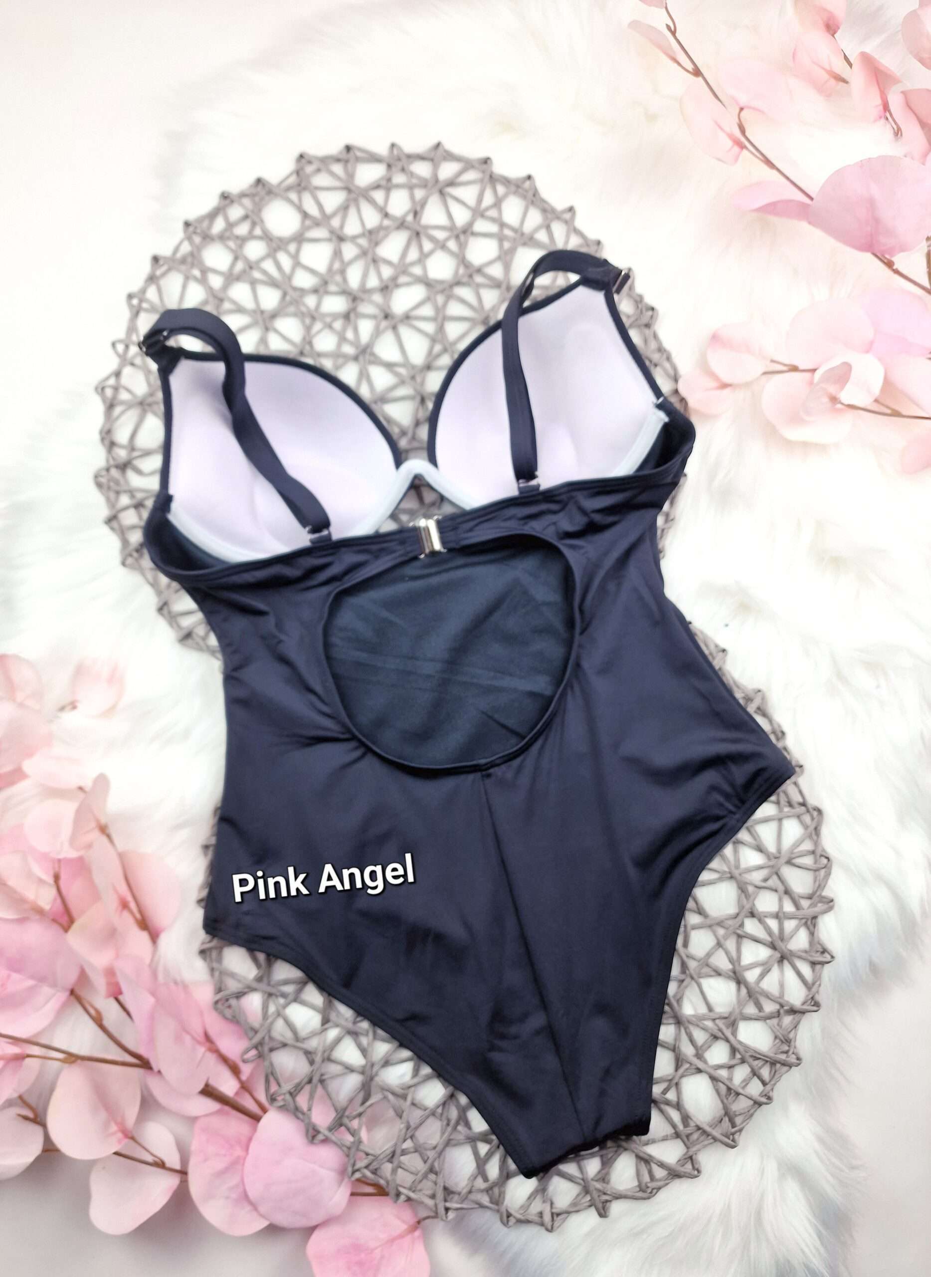 Дамски атрактивен цял бански. С подплънки с лек“push up” ефект и банели . Полугол гръб. Със задно закопчаване. С регулиращи се презрамки.