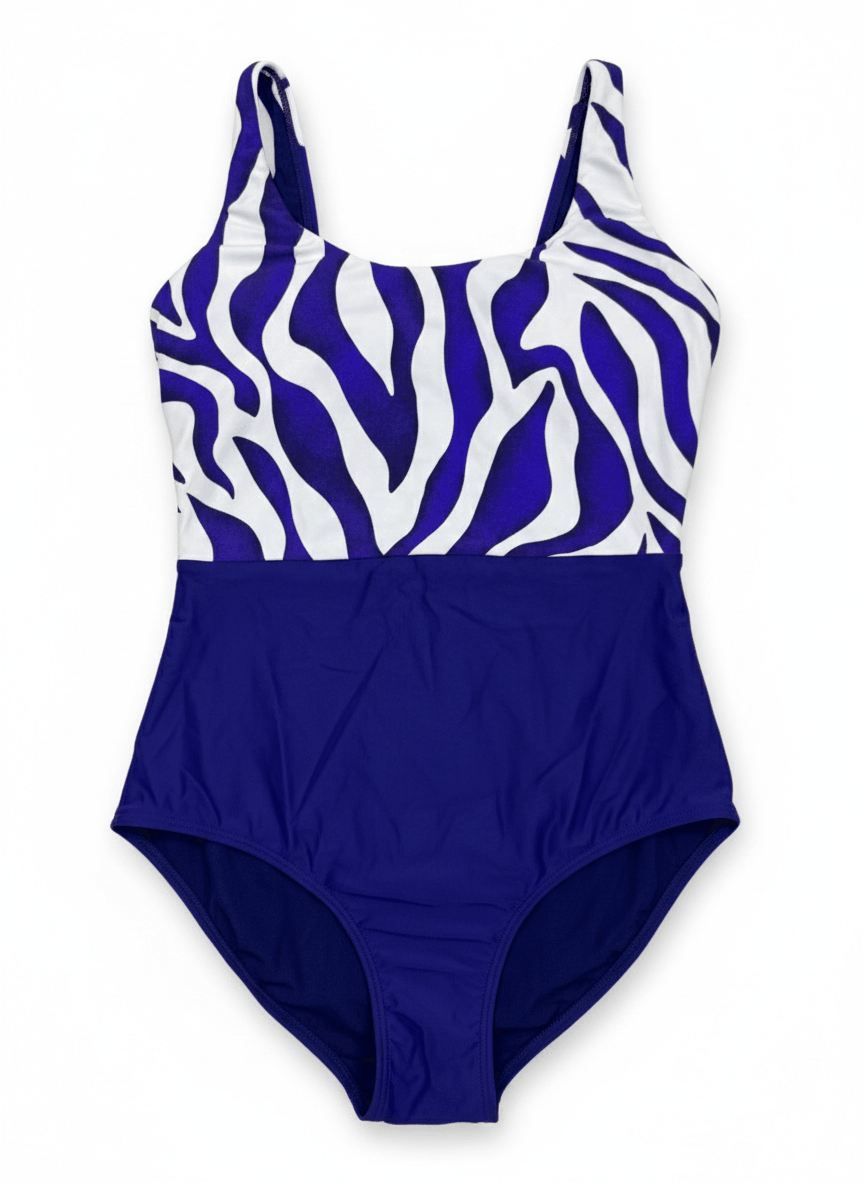 Открий перфектния баланс между елегантност и комфорт с този стилен цял бански. Моделът впечатлява с модерeн зебра принт в горната част и изчистена долна част. Подходящ за жени, които търсят модерен бански с ефектен принт, оформяща линия и универсален дизайн. Комбинирай с плажна туника, шапка и сандали за завършена лятна визия.