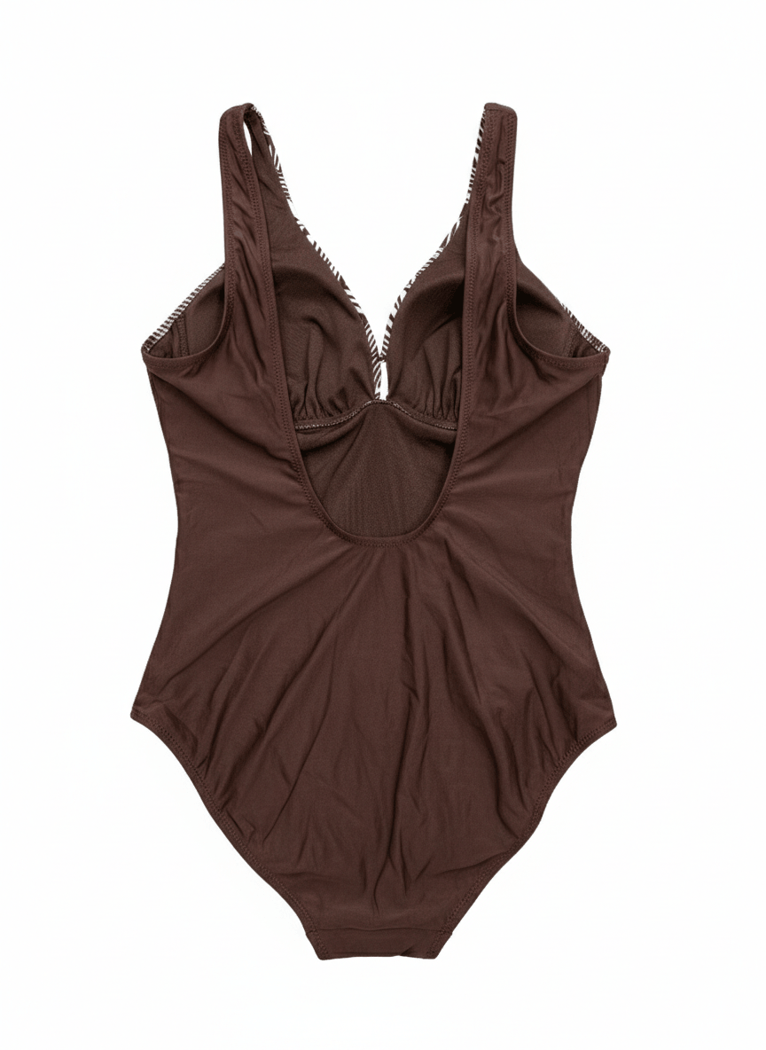 Изработен от еластична и бързосъхнеща материя, банският осигурява удобство както на плажа, така и край басейна. Подходящ е за жени, които търсят комбинация от комфорт и стил.