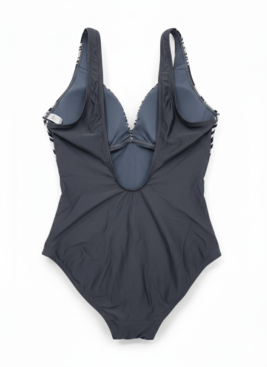 Елегантен дамски цял бански с модерен животински принт и стилна катарама в талията. Подходящ е както за плаж, така и за басейн.