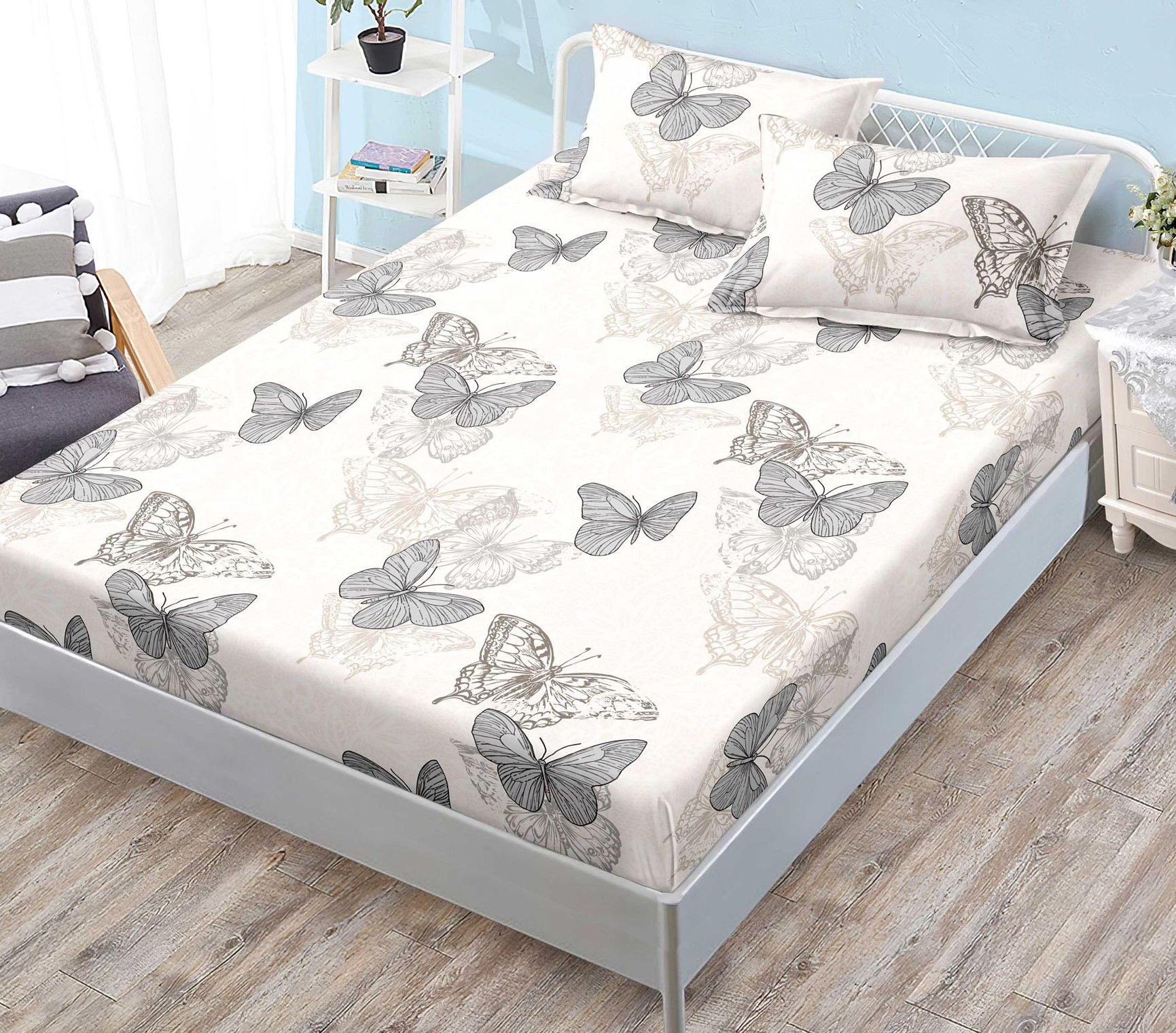 Комплект от чаршаф с ластик и 2бр калъфки.
