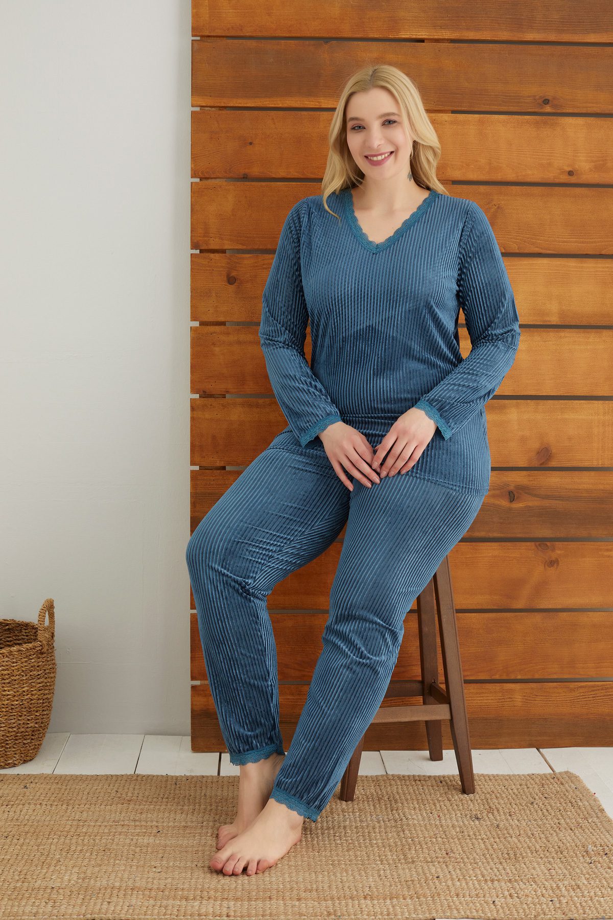 Дамска пижама с дълго долнище от кадифе. . Материя подходяща за зимните нощи .